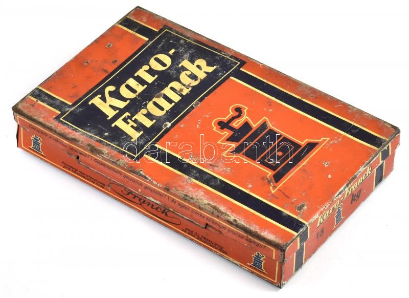 Franck zománcozott fém doboz, kopott, kissé horpadt, 17x11x3 cm