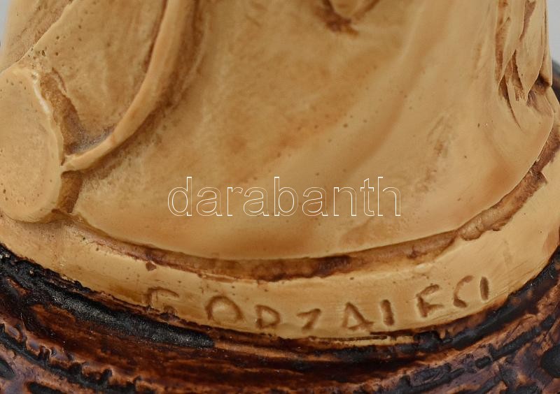 Keleti szobor, virágot tartó nő, műgyanta, jelzett, m: 27cm