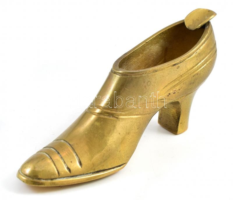 Réz női cipő alakú hamutartó, kopásokkal, m: 7 cm, h: 14 cm