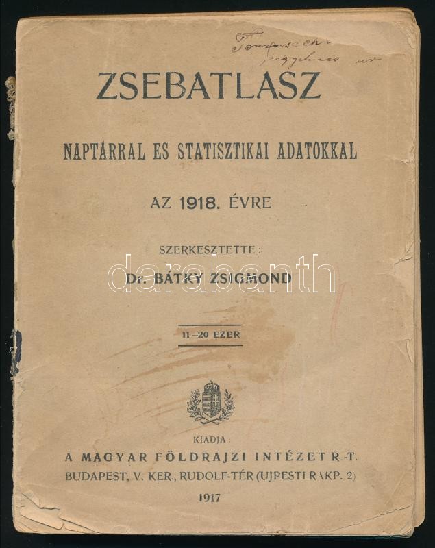 1917 Zsebatlasz naptárral és statisztikai adatokkal az 1918. évre, sze... https://www.darabanth.com/en/395-Online-auction/395.0/Art-and-other-collectibles/Maps~500029/1917-Zsebatlasz-naptarral-es-statisztikai-adatokkal-az-1918-evre-szerk-Batky-Zsigmond-Magya~II2399687