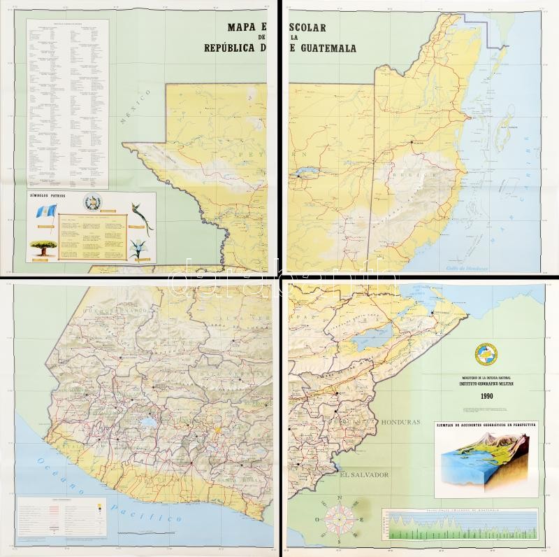 1990 Guatemala nagyméretű geográfiai térképe, 4 lapon, 1:500 000, jó á...