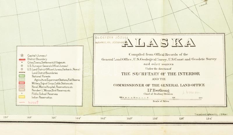Description: cca 1900 Alaszka térkép, összeállította és rajzolta Daniel O'Hare, Andrew B. Graham Co., Lithographers, Washington D.C., 68x93 cm, vasútvonal ceruzával jelölve, lapszéli kisebb szakadásokkal, tulajdonosi bélyegzőkkel