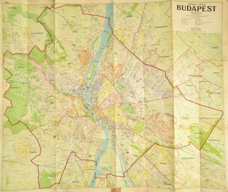 cca 1920-1930 Budapest székesfőváros térképe, 1:25.000,tervezték: Irmédi Molnár László, Jäger Károly, Bp., Kókai Lajos, javított, szakadt, névbejegyzéssel, foltos címlappal, 76x91 cm
