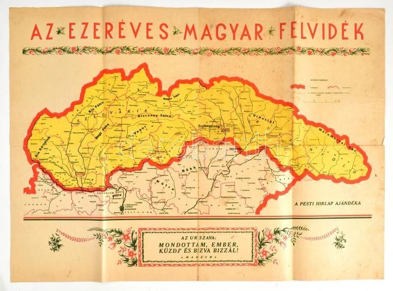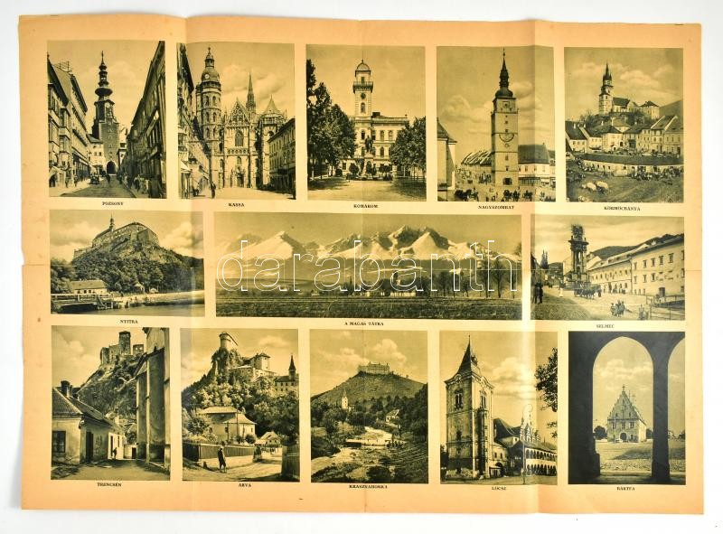 cca 1938 Az ezeréves magyar Felvidék. Bp., Pesti Hírlap, hátoldalán ké... https://www.darabanth.com/en/395-Online-auction/395.0/Art-and-other-collectibles/Maps~500029/cca-1938-Az-ezereves-magyar-Felvidek-Bp-Pesti-Hirlap-hatoldalan-kepekkel-a-felvideki-var~II2397232