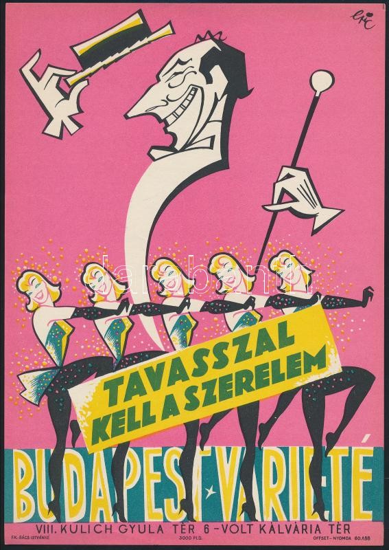 Vogel Erika: Tavasszal kell a szerelem, Budapest Varieté, Offset Nyomda, villamosplakát, 23,5×16,5 cm