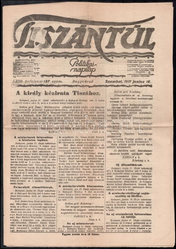 https://www.darabanth.com/en/395-Online-auction/395.0/Art-and-other-collectibles/Printed-Materials~500031/1914-Tisztantul-poltikai-napilap-XIII-evf-137-sz-1917-junius-16-kis-szakadasokkal-8-p~II2402708