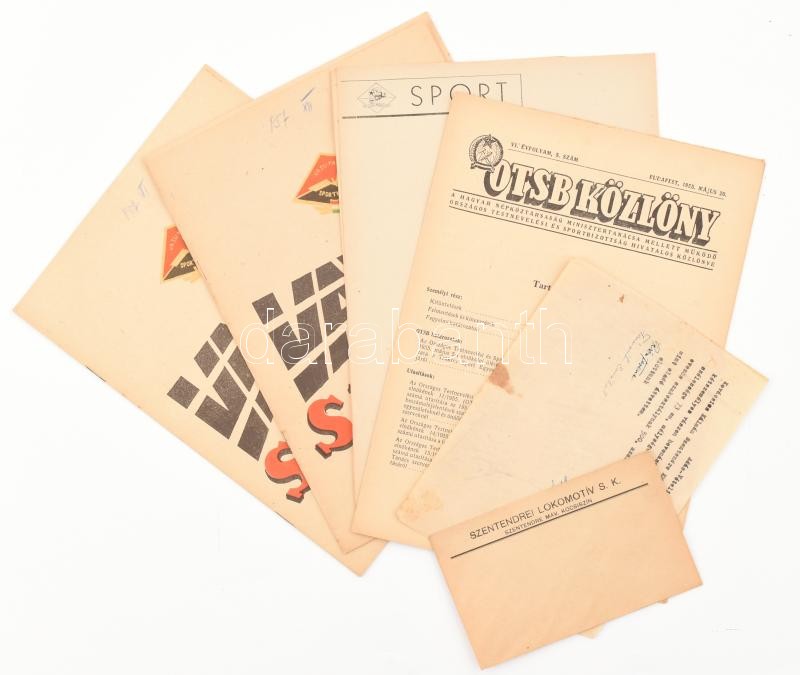 cca 1954 A Szentendrei Lokomotív Sportegyesülettel kapcsolatos nyomtatványok gyűjteménye