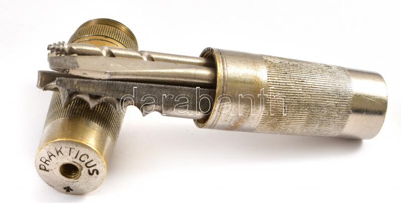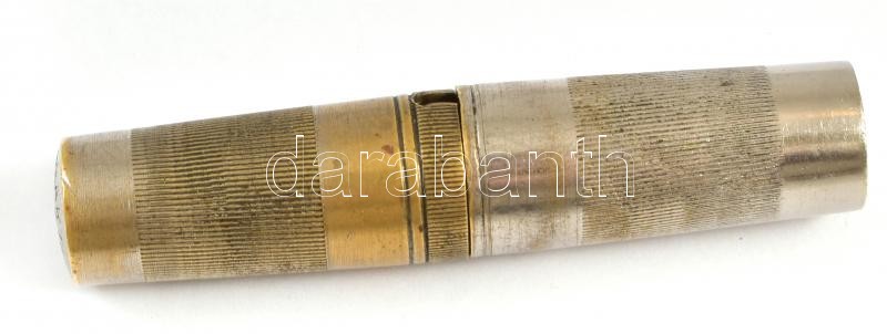 cca 1920-30 Cserkész Prakticus szerszám, 6 klf. fejjel (csavarhúzó, reszelő, dugóhúzó stb.), menet mentén szétcsavarozható, német gyártmány (D.R.P. jelzéssel) h: 8 cm,