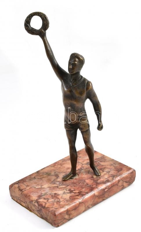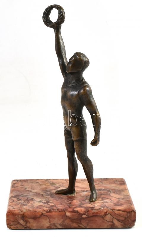 Férfi koszorúval. Bronz szobor, márvány talapzaton. Jelzés nélkül. 22 ...