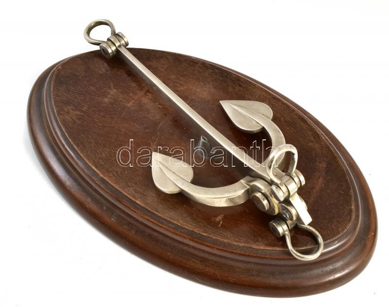 Fém dísz horgony, fa talapzaton, m: 10 cm, 25×14 cm