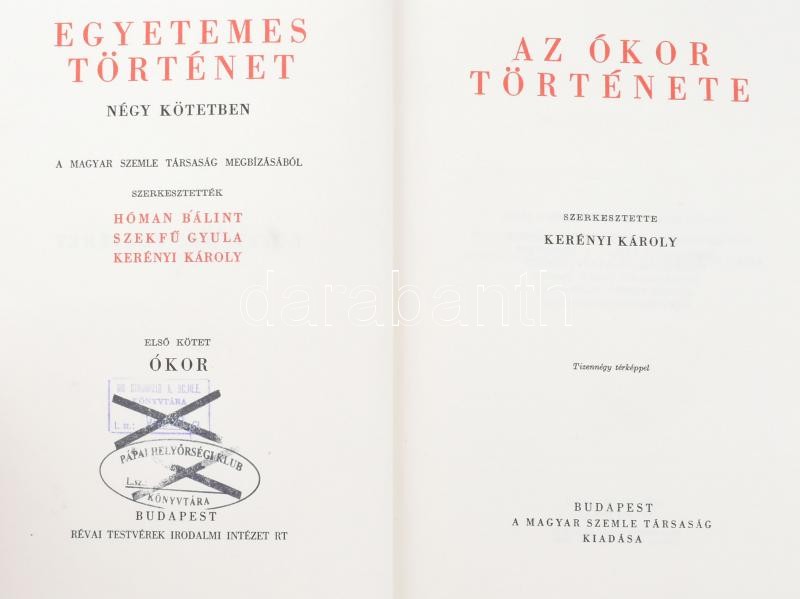 Egyetemes történet. Szerk.: Hóman Bálint, Szekfű Gyula, Kerényi Károly...