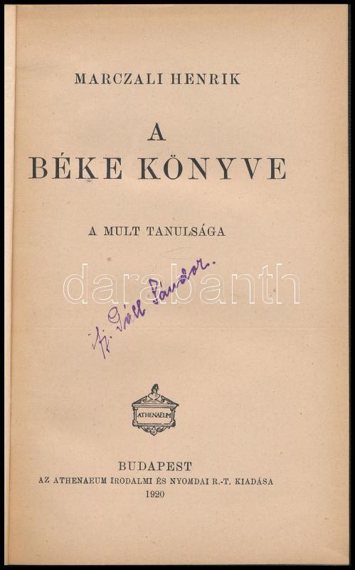 Marczali Henrik: A béke könyve. A mult tanulsága. Hősök és hőstettek. ... https://www.darabanth.com/en/395-Online-auction/395.0/Books/Books-Military~1500006/Marczali-Henrik-A-beke-konyve-A-mult-tanulsaga-Hosok-es-hostettek-1914-1918-Bp-1920-A~II2398479