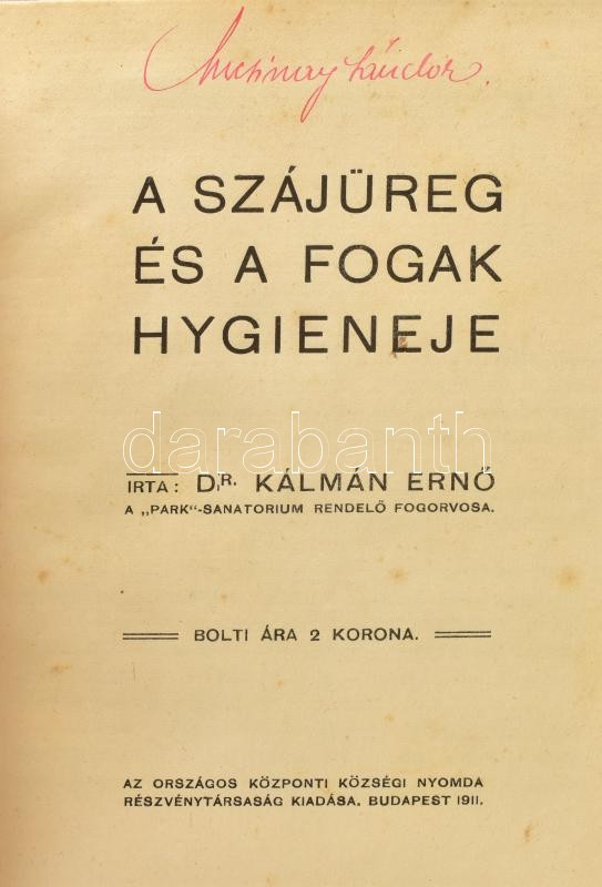 dr. Kálmán Jenő: A szájüreg és a fogak hygiéneje. Bp., 1911. Országos Központi Községi Nyomda Rt. Újrakötve, félvászon kötésben.
