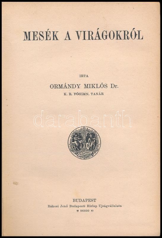 Ormándy Miklós: Mesék a virágokról. Bp.,1911, Rákosi Jenő, 151+1 p. Ki... https://www.darabanth.com/en/395-Online-auction/395.0/Books/Books-Other-rarities~1500021/Ormandy-Miklos-Mesek-a-viragokrol-Bp-1911-Rakosi-Jeno-151plus1-p-Kiadoi-kopott-aranyozott~II2400482