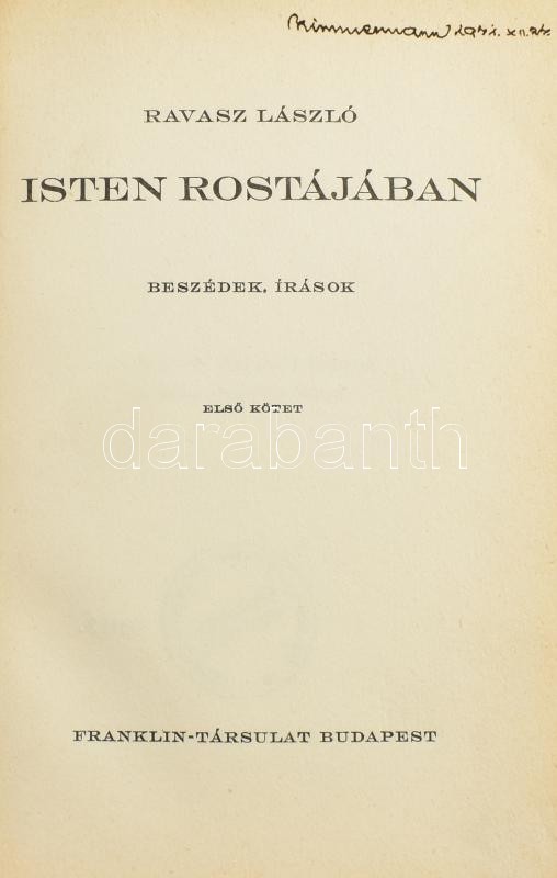 https://www.darabanth.com/en/395-Online-auction/395.0/Books/Books-Other-rarities~1500021/Ravasz-Laszlo-Isten-rostajaban-I-III-kot-Beszedek-irasok-Bp-1941-Franklin-XIIplus498-~II2399507