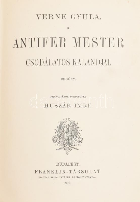 https://www.darabanth.com/en/395-Online-auction/395.0/Books/Books-Other-rarities~1500021/Verne-Gyula-Antifer-mester-csodalatos-kalandjai-Forditotta-Huszar-Imre-Bp-1896-Franklin-448-~II2403018