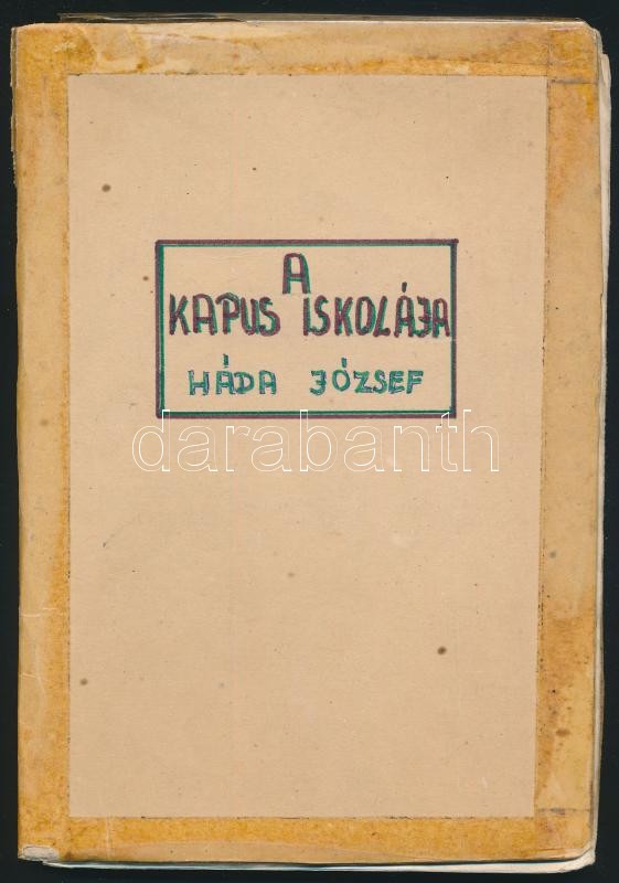 Háda József: A kapus iskolája. Bp., 1943, Háda József. Fekete-fehér képekkel illusztrált Pótolt papírkötés, eredeti borító hiányzik. Helyenként kissé foltos lapokkal.