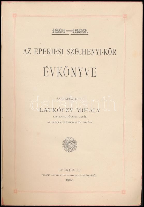 1891-1892 Az Eperjesi Széchenyi-Kör évkönyve. Szerk.: Latkóczy Mihály.... https://www.darabanth.com/en/395-Online-auction/395.0/Books/Books-Travelling-Local-History~1500001/1891-1892-Az-Eperjesi-Szechenyi-Kor-evkonyve-Szerk-Latkoczy-Mihaly-Eperjes-1893-Kosch-C3~II2398406