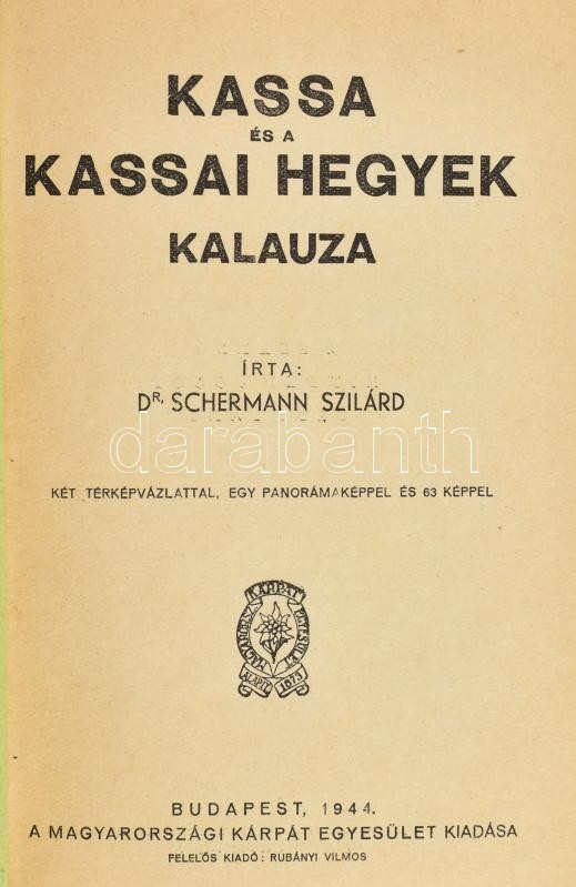 Dr. Schermann Szilárd: Kassa és a Kassai hegyek kalauza. Bp., 1944, Ma... https://www.darabanth.com/en/395-Online-auction/395.0/Books/Books-Travelling-Local-History~1500001/Dr-Schermann-Szilard-Kassa-es-a-Kassai-hegyek-kalauza-Bp-1944-Magyarorszagi-Karpat-EgyesC3~II2402864