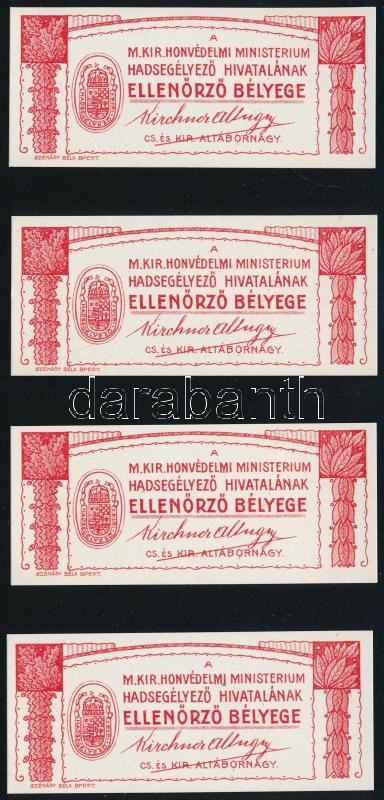 cca 1914 M. Kir. Honvédelmi Minisztérium Hadsegélyező Hivatalának ellenőrző bélyege, 4 db