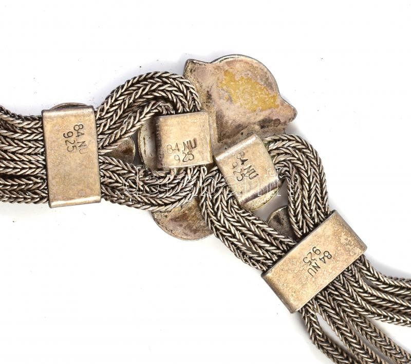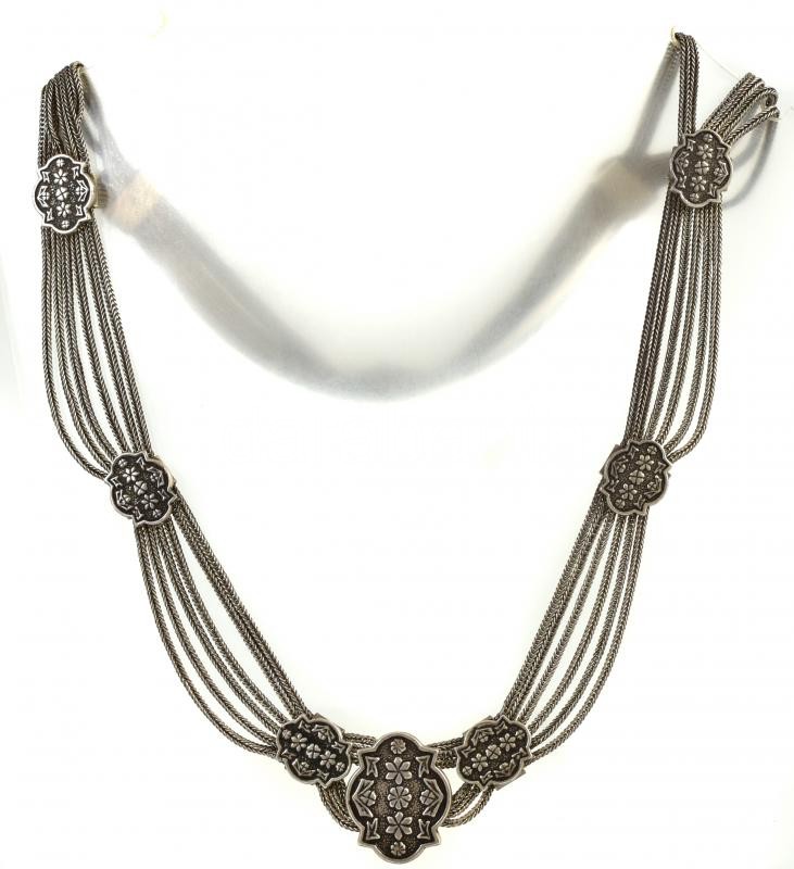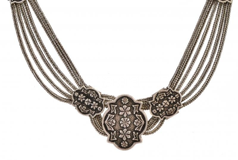 Ezüst (Ag) nyakék, több fonott szállal, köztes elemekkel, 58 g, h: 48 ...