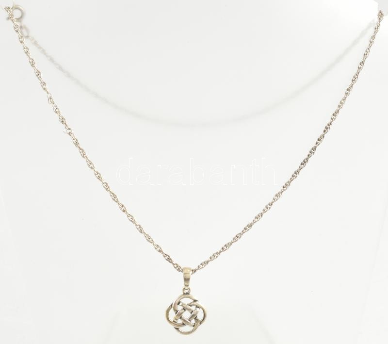 Ezüst(Ag) csavart nyaklánc, medállal, jelzett, h: 39 cm, nettó: 4,56 g