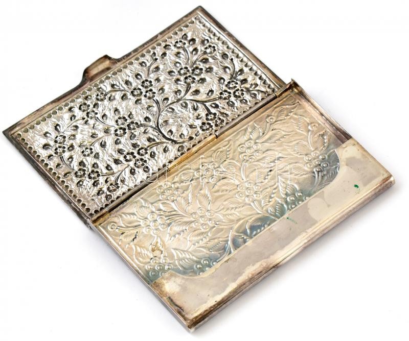 Ezüst(Ag) díszes, virágmintás névjegykártya tartó. Jelzett, apró foltokkal, nettó: 68 g