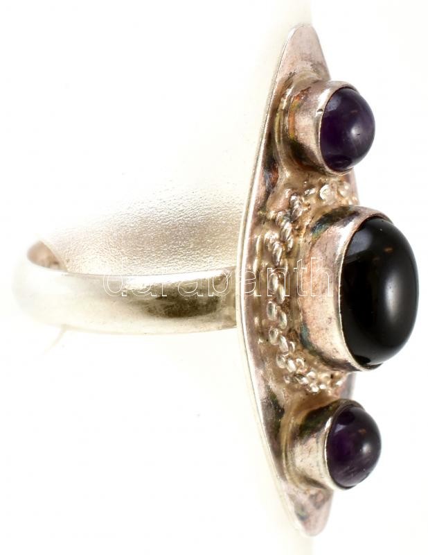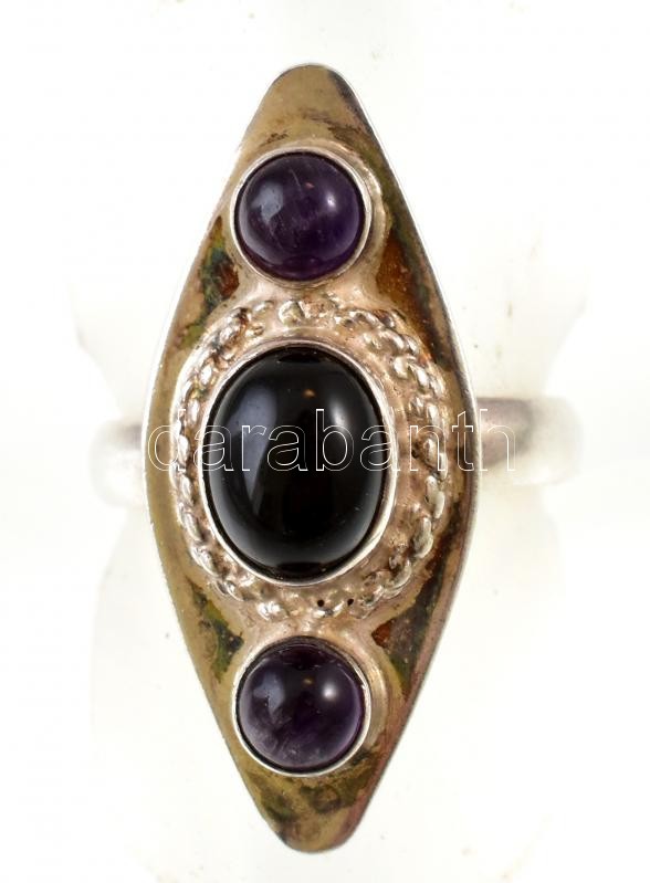 Ezüst(Ag) féldrágaköves gyűrű. Jelzett, méret: 55, bruttó: 5,6 g