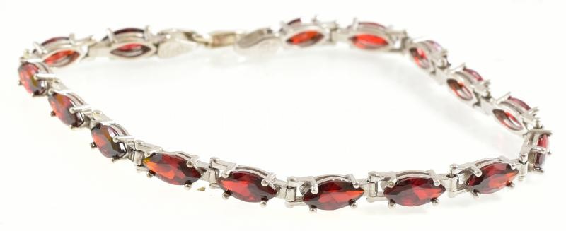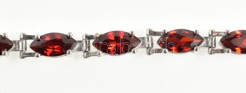 Ezüst(Ag) karkötő, piros kövekkel, jelzett, h: 18 cm, bruttó: 8,32 g