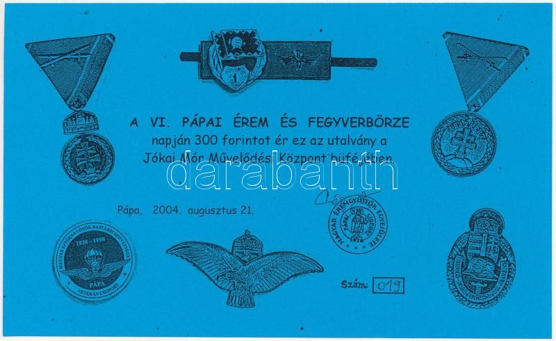 Pápa 2004. "VI. Pápai Érem és Fegyverbörze" utalványa 300Ft ...