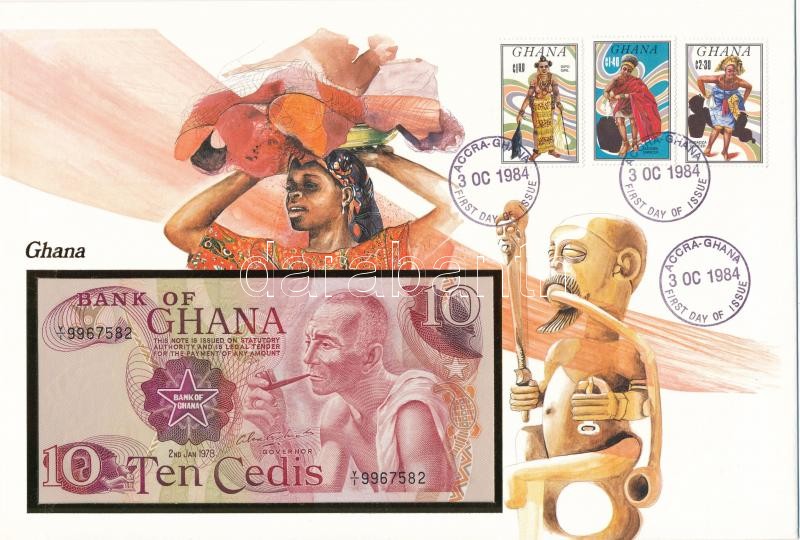 https://www.darabanth.com/en/395-Online-auction/395.0/Numismatics/Envelopes-with-Coins-and-Banknotes~2000004/Ghana-1978-10C-felbelyegzett-boritekban-belyegzessel-TI-Ghana-1978-10-Cedis-in-envelope-wi~II2393792