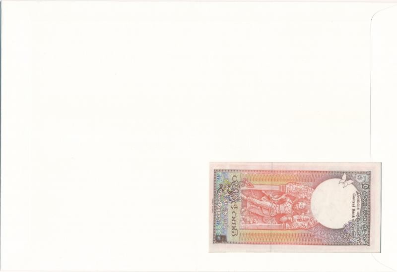 Sri Lanka 1982. 5 Rupees in envelope with stamps and cancellations C:UNC