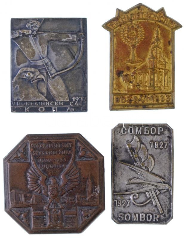 Description: Jugoszlávia 4db különféle Sokol mozgalmi jelvény tétel Szabadka, Hódság, Zombor valamint Skopje. T:2,2-