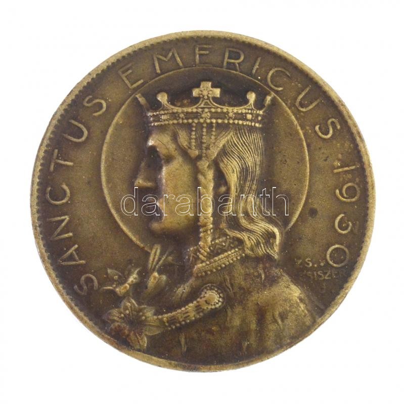 Zsákodi Csiszér János (1883-1953) 1930. "Sanctus Emericus / Az ország ereje a tiszta ifjuság" Szent Imrét ábrázoló Br lemezplakett "LUDVIG BP THÉK-U. 44." gyártói jelzéssel (30mm) T:1- ferde tű
