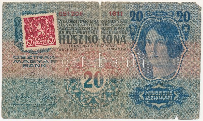 1913. 20K "1811 051206" csehszlovák 20h bélyeggel felülbélye...
