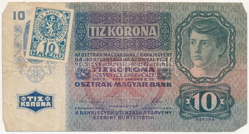 1915. 10K "1099 815967" csehszlovák 10h bélyeggel felülbélye...