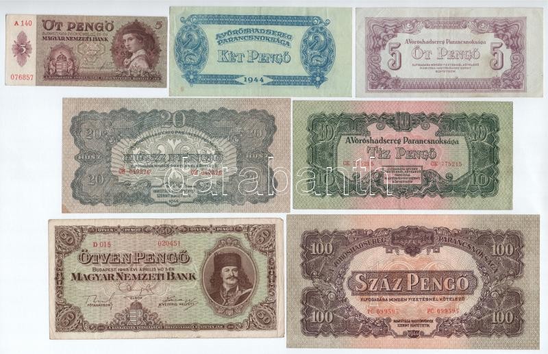 https://www.darabanth.com/en/395-Online-auction/395.0/Numismatics/Hungarian-Banknotes~2000007/1939-5P-plus-1944-2-100P-A-Voroshadsereg-Parancsnoksaga-5xklf-plus-1945-50P-TII-III~II2401283