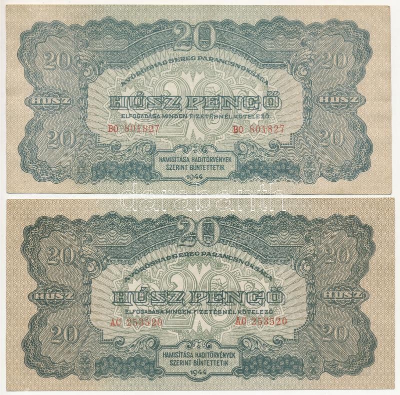 https://www.darabanth.com/en/395-Online-auction/395.0/Numismatics/Hungarian-Banknotes~2000007/1944-20P-A-Voros-Hadsereg-Parancsnoksaga-2x-eltero-szinvaltozatok-TII-III-szep-papir-~II2402318