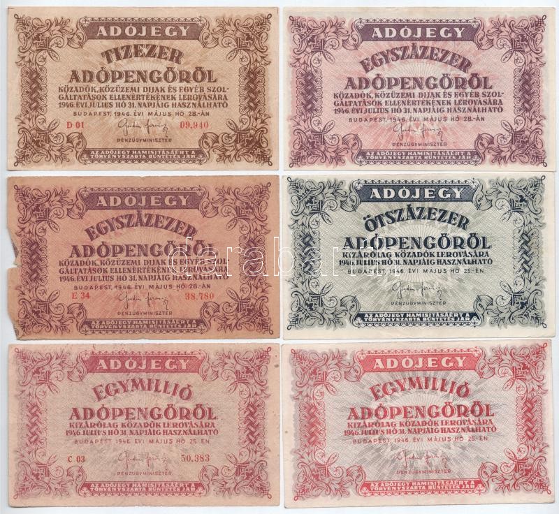 1946. 10.000AP + 100.000AP (2x) sorszámozott és sorszám nélküli változatok + 500.000AP + 1.000.000AP (2x) sorszámozott és sorszám nélküli változatok T:III,III-
