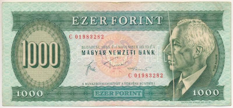 1983. november 10. 1000Ft "C 01983282" nyomdai papírráncból eredő látványos nyomathibával T:III