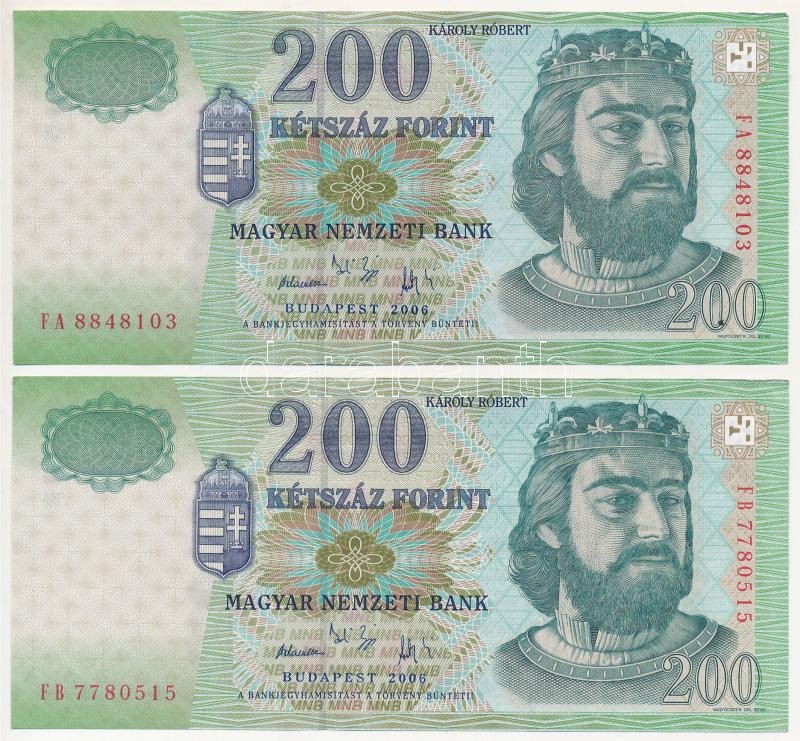 2006. 200Ft "FA 8848103" + 200Ft "FB 7780515" T:II,III