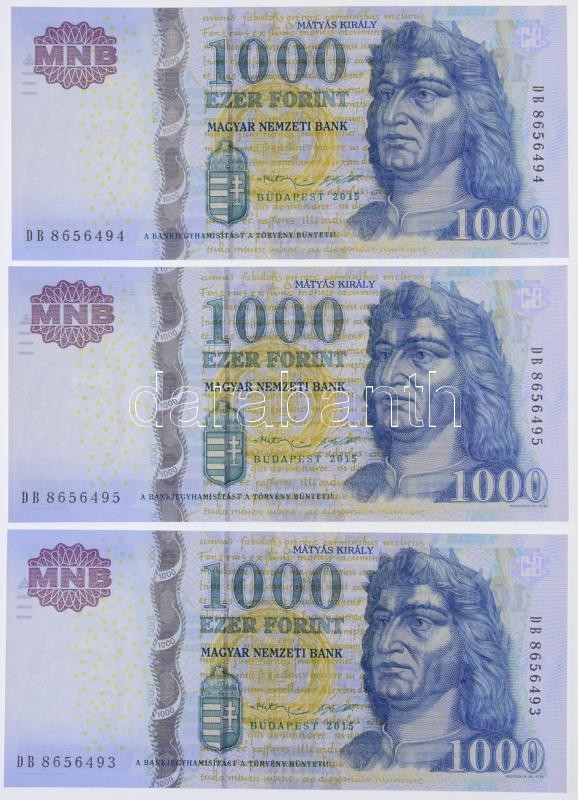 2015. 1000Ft (3x) sorszámkövetők "DB 8656493 - DB 8656495" T...