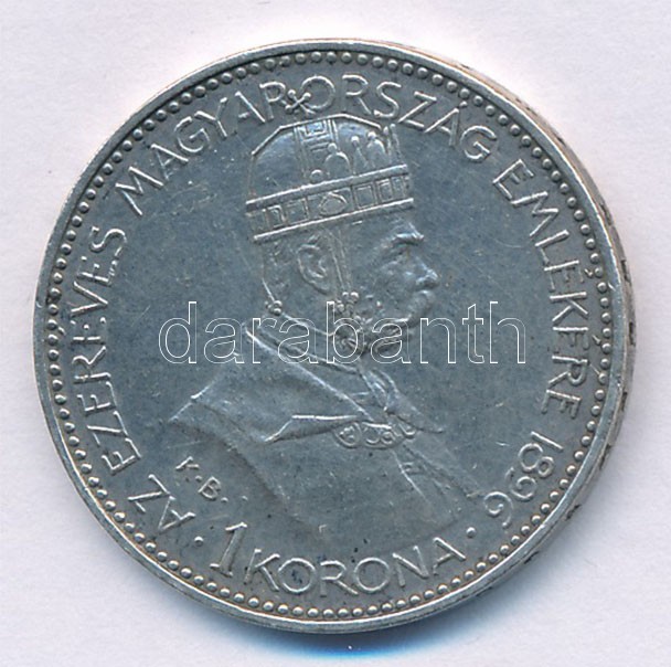 https://www.darabanth.com/en/395-Online-auction/395.0/Numismatics/Hungarian-coins-and-coins-with-Hungarian-mint-marks~2000008/1896KB-1K-Ag-Millenium-T1-2-Adamo-K52~II2397364