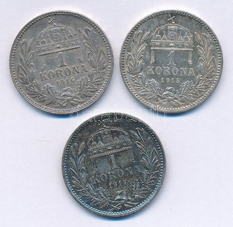 https://www.darabanth.com/en/395-Online-auction/395.0/Numismatics/Hungarian-coins-and-coins-with-Hungarian-mint-marks~2000008/1914KB-1916KB-1K-Ag-Ferenc-Jozsef-3xklf-T1-2-patina~II2400105