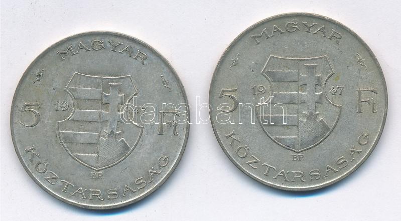 https://www.darabanth.com/en/395-Online-auction/395.0/Numismatics/Hungarian-coins-and-coins-with-Hungarian-mint-marks~2000008/1947-5Ft-Ag-Kossuth-2x-T2-3-patina-Adamo-F81~II2385170