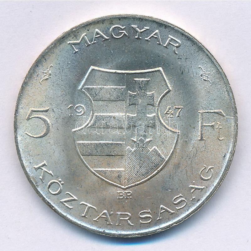 https://www.darabanth.com/en/395-Online-auction/395.0/Numismatics/Hungarian-coins-and-coins-with-Hungarian-mint-marks~2000008/1947-5Ft-Ag-Kossuth-T1-1-kis-patina-Adamo-F81~II2395311