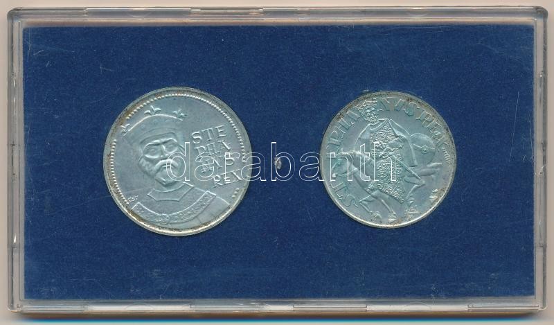 1972. 50Ft Ag + 100Ft Ag "Szent István" pár eredeti, kék plasztiktokban T:BU patina