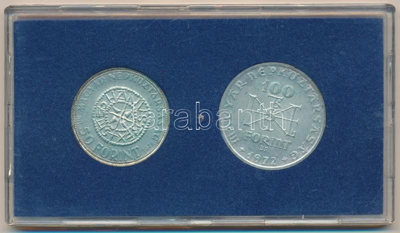 https://www.darabanth.com/en/395-Online-auction/395.0/Numismatics/Hungarian-coins-and-coins-with-Hungarian-mint-marks~2000008/1972-50Ft-Ag-plus-100Ft-Ag-Szent-Istvan-par-eredeti-kek-plasztiktokban-TBU-patina--Adamo-EM38-~II2383608