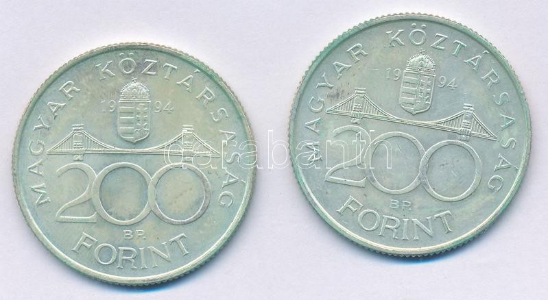 1994. 200Ft Ag "Deák" (2x) T:2 patina Adamo F13.1