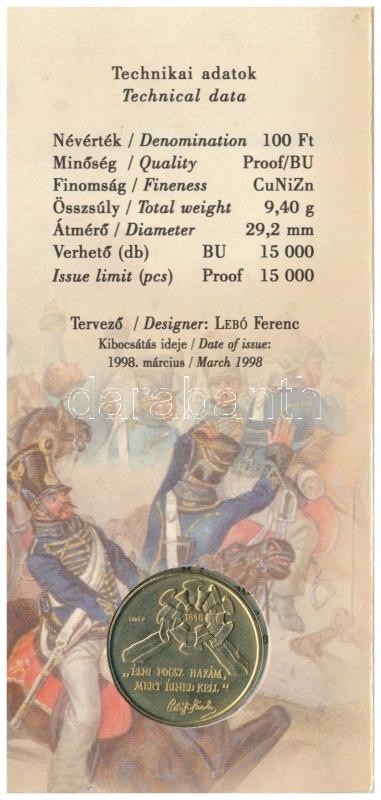 1997. 50f-200Ft (6xklf) HIÁNYOS forgalmi sor, benne 200Ft Ag "Deák" + 1998. 100Ft alpakka "1848-1849. Szabadságharc 150. évfordulójára" karton díszcsomagolásban T:BU